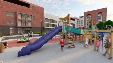 Современная детская площадка с безопасным покрытием и игровыми комплексами для детей всех возрастов. Удобно, интересно и безопасно — каждый день новые впечатления и радость для малышей.